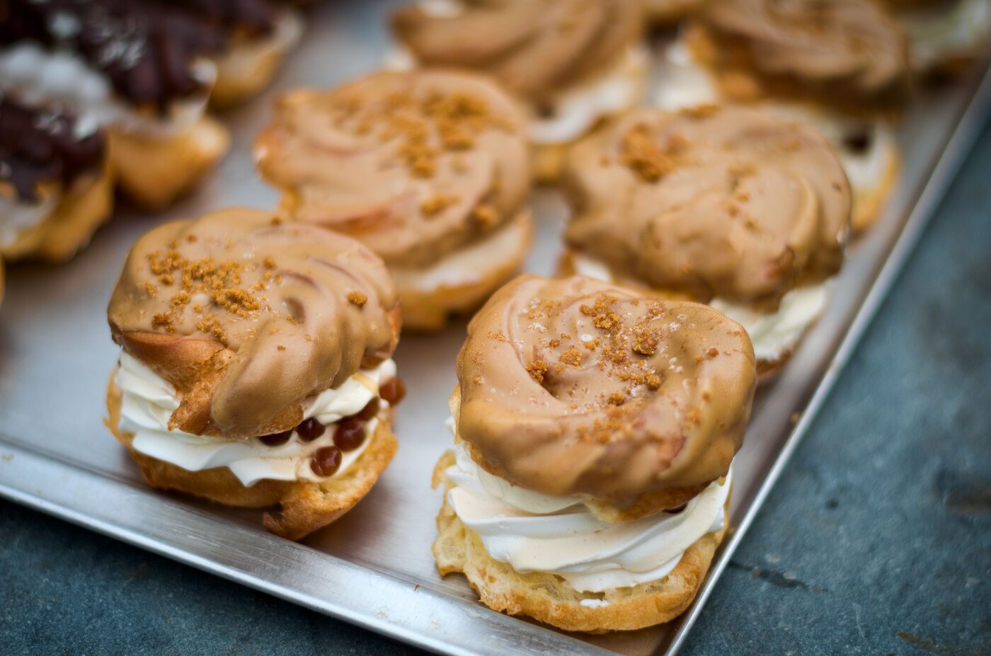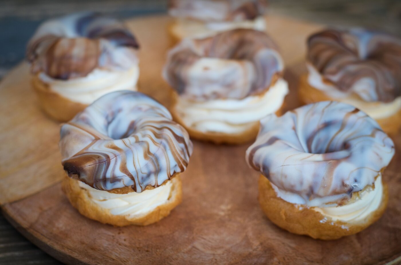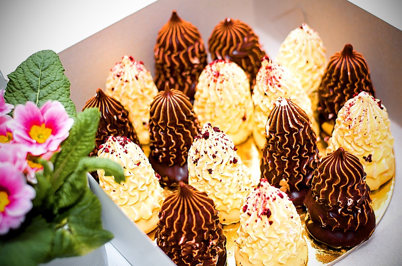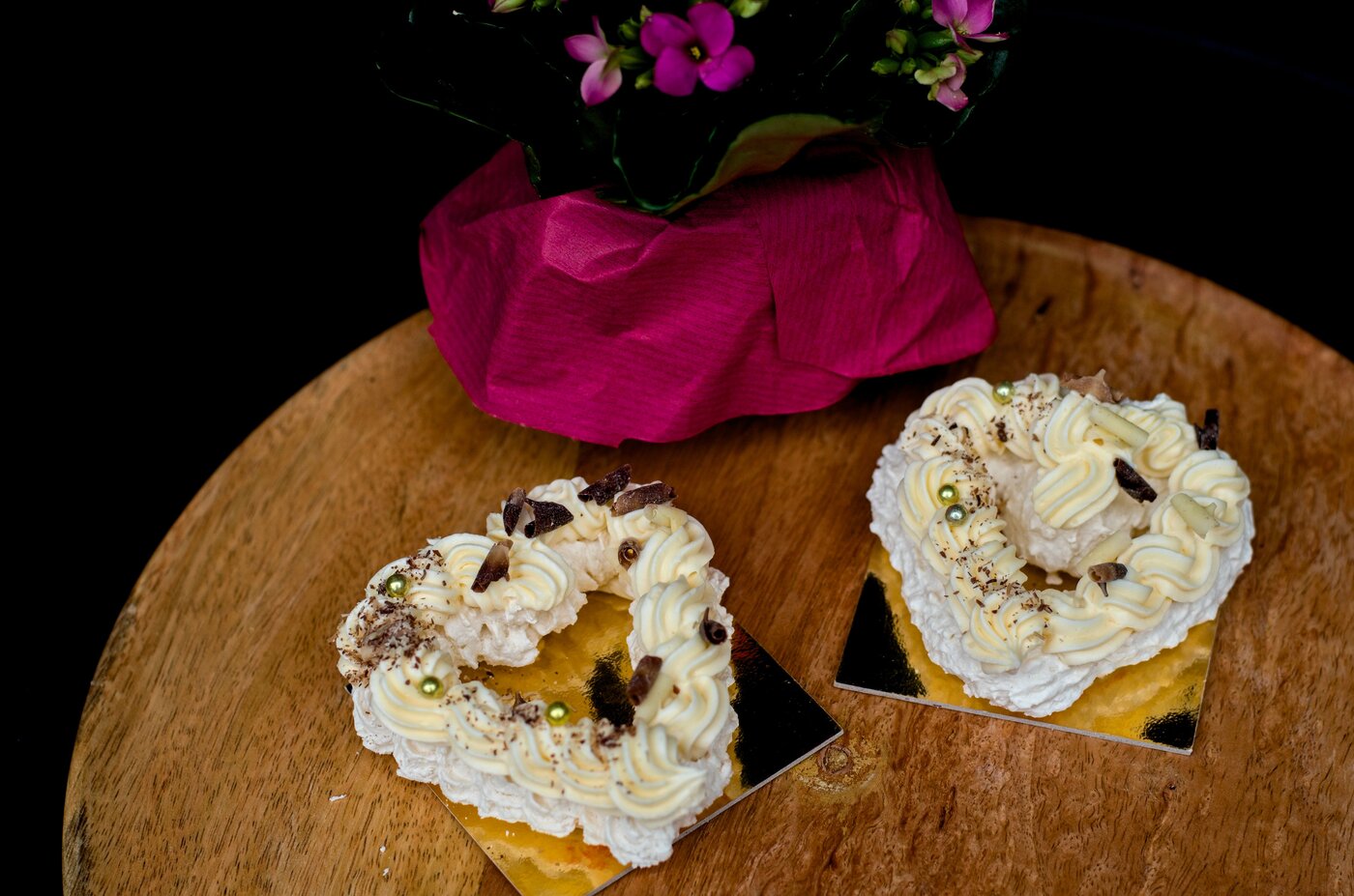 Věneček srdce máslovo-šlehačkový s melírovanou čokoládovou polevou  (30 Kč)