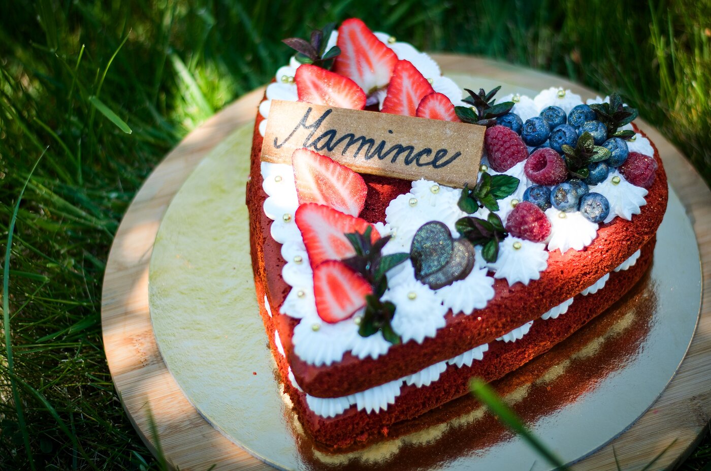 Dort Red velvet srdce - slepovaný, velký, 8-10 porcí, s vlastním VĚNOVÁNÍM  (690 Kč)
