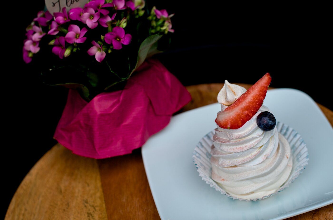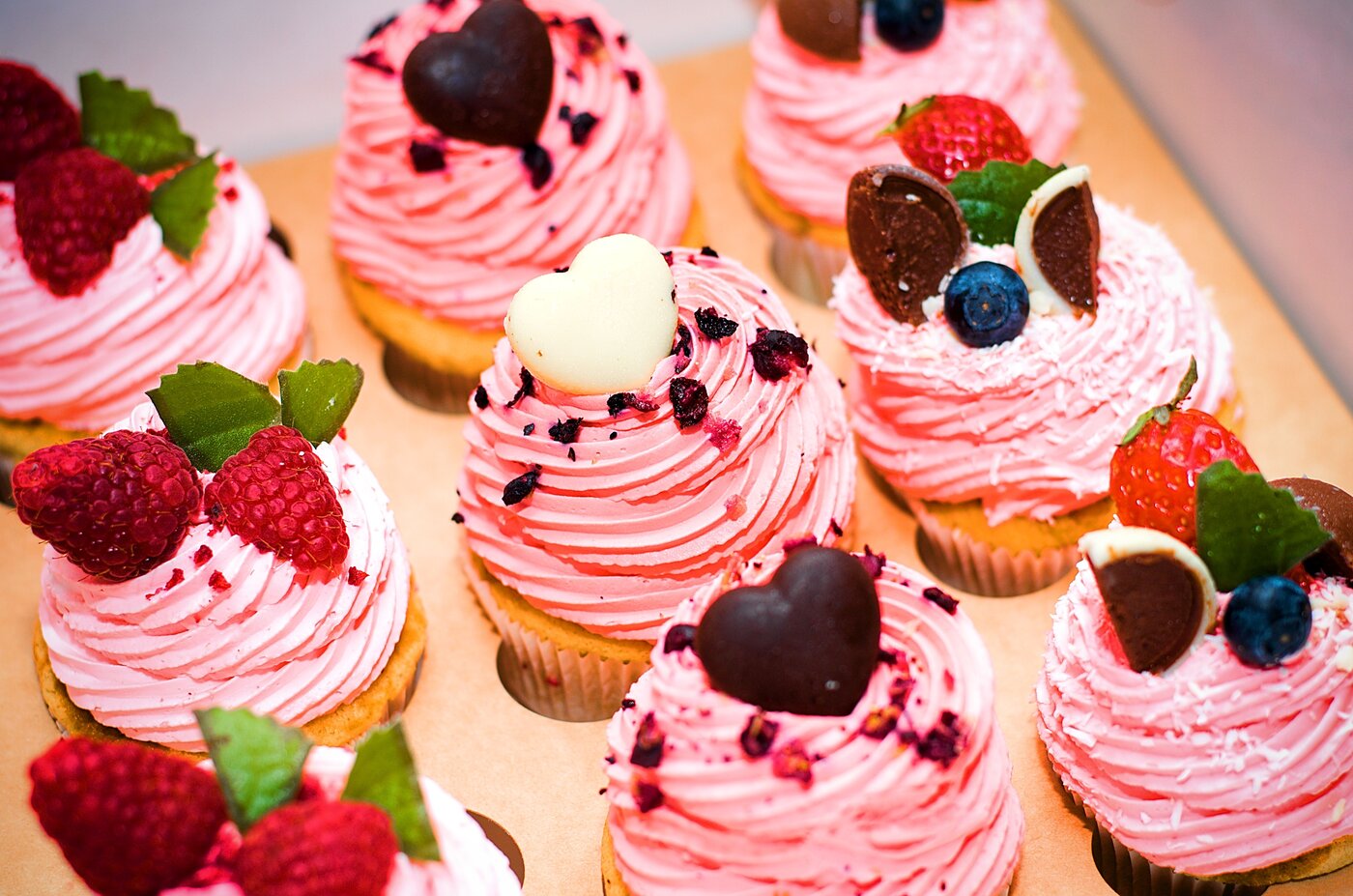 Cupcake s ovocným a čokoládovým zdobením  (33 Kč)